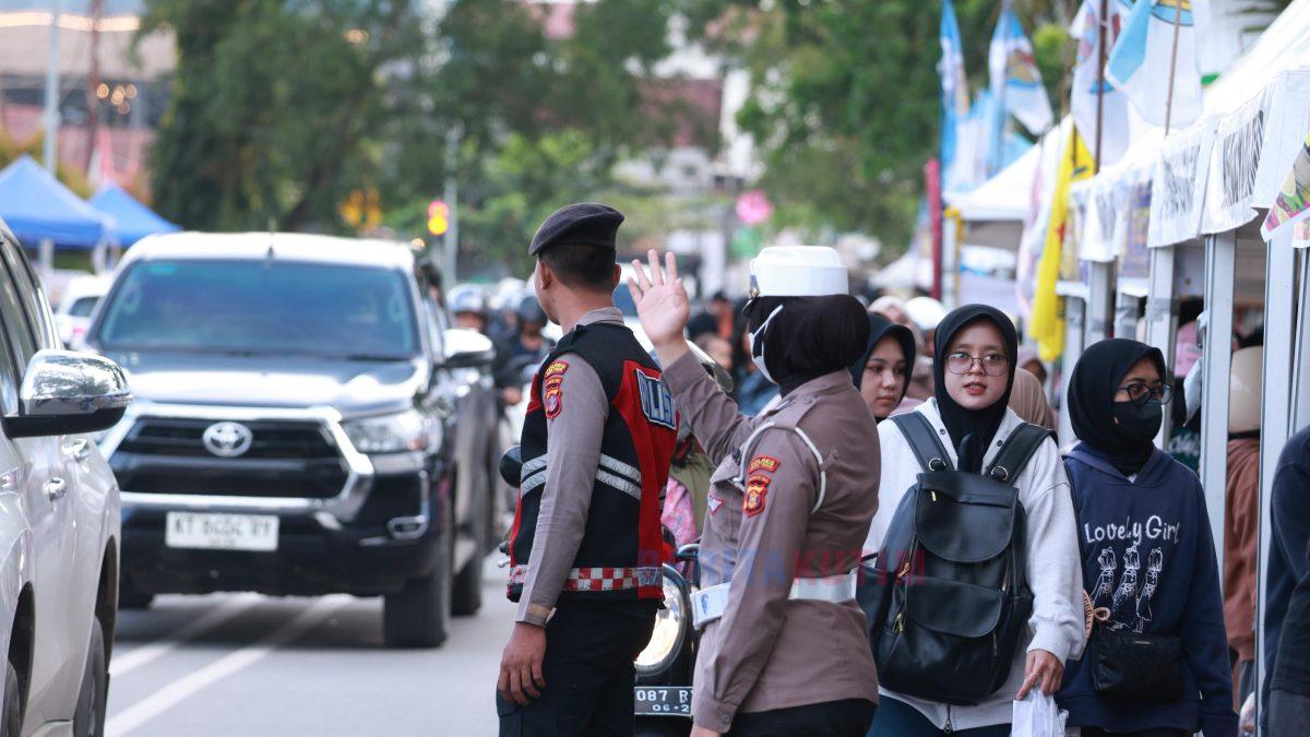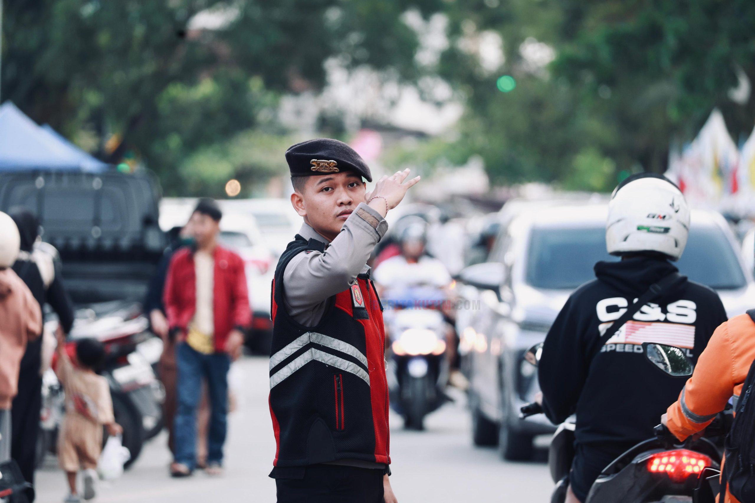 Kehadiran polisi di lapangan bertujuan untuk mengurai kepadatan kendaraan sekaligus memastikan aktivitas masyarakat berlangsung tertib dan aman.