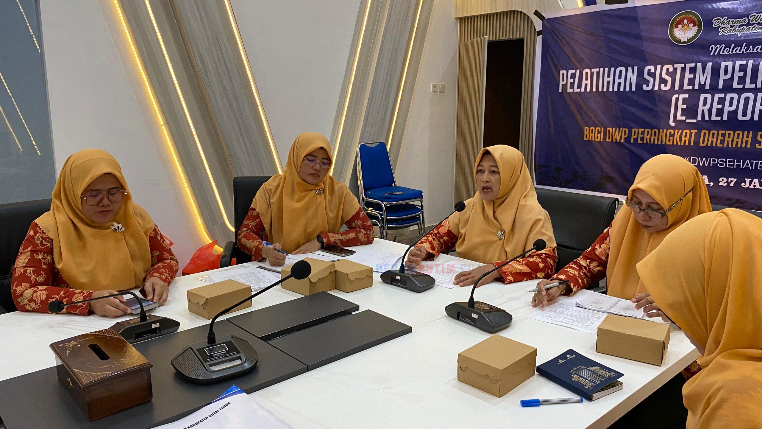 Pelatihan Sistem Pelaporan Elektronik (E-Reporting) bagi DWP Perangkat Daerah digelar di Ruang Rapat Diskominfo Staper Kutim, Bukit Pelangi, Sangatta Utara, Selasa (27/01/2026). Kegiatan ini diikuti sekitar 40 perwakilan dari masing-masing PD.