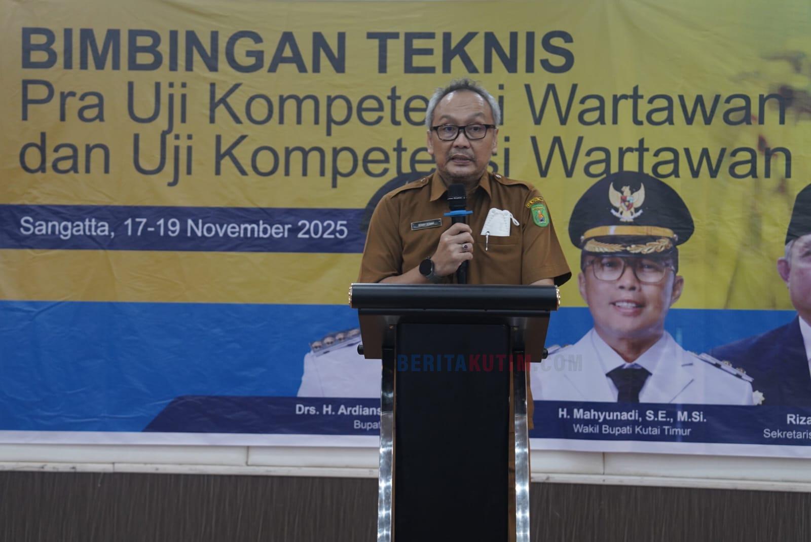 Hal itu ia sampaikan saat memberikan sambutan pada pelaksanaan Uji Kompetensi Wartawan yang digelar oleh Diskominfo Staper bekerja sama dengan PWI Kutim, Selasa (18/11/2025).